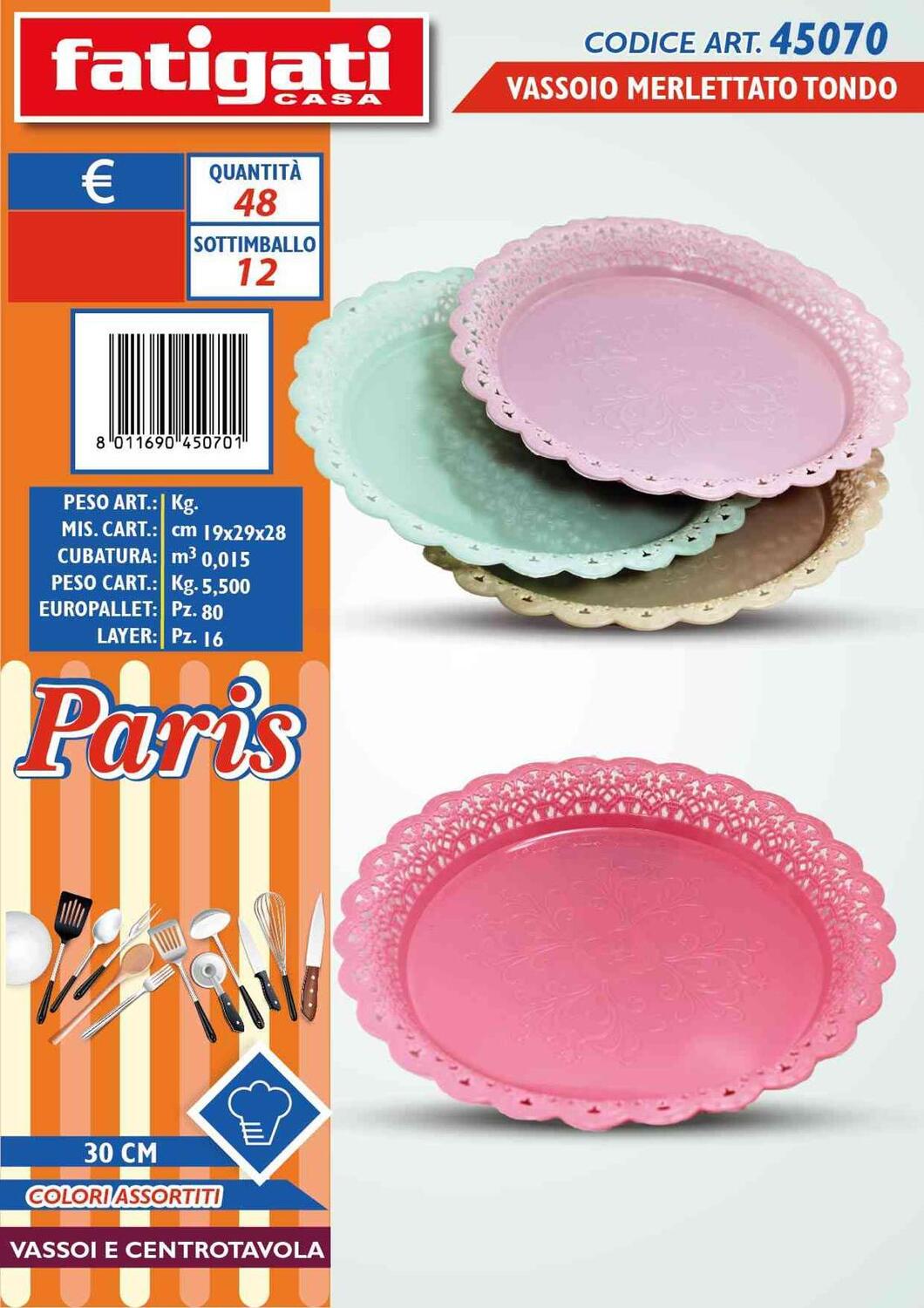 FATIGATI VASSOIO MERLETTATO TONDO cm 30 [Conf.da 12 pezzi] Prezzo unitario Conf.da 12 pezzi | € 0,00 €0,00 0,00 Acheter Confezione con colori assortiti